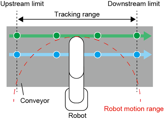 TrackMotionRange (Conveyor number, Target position [, Tool coordinate [, Work coordinate] ])