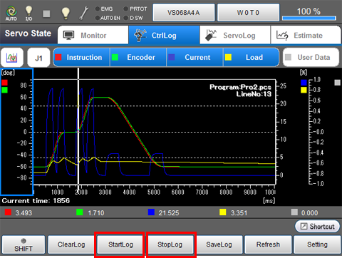 Operation path : [F2 Arm] - [F3 Servo State] - [CtrlLog tab]