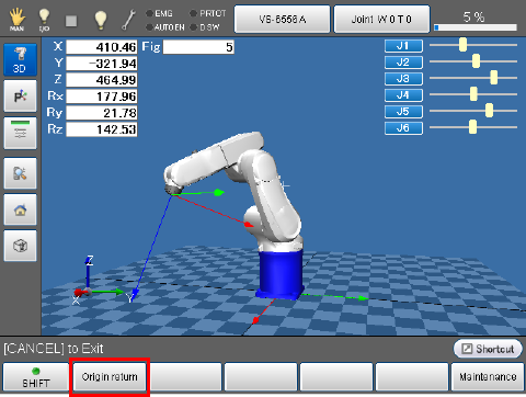 While pressing the deadman switch correctly, when keeping pressing [OK] button, the Home Position Guidance is executed.