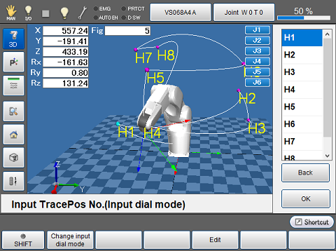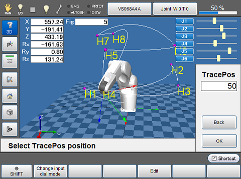 Changes the displaying method for the current position information of robot. Four types of displays, "P type display", "J type display", "T type display" and "No display" can be selected. Press button to switch between them. |