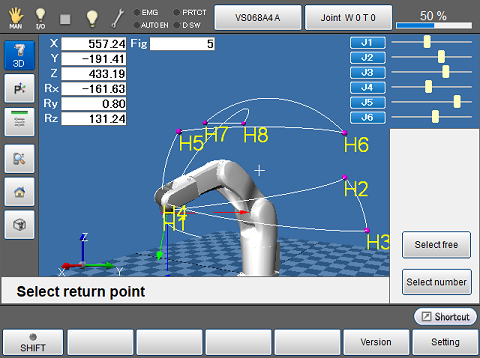 Pressing the [Select free] button or the [Select number] button will takes you to the home position selection screen.