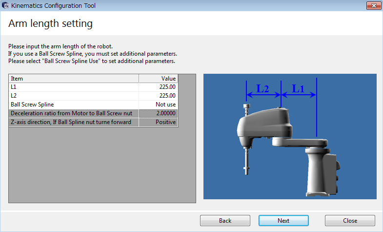 - The values of arm length to be set are limited. About every particular item of arm length, refer to "Arm Parameter Settings".