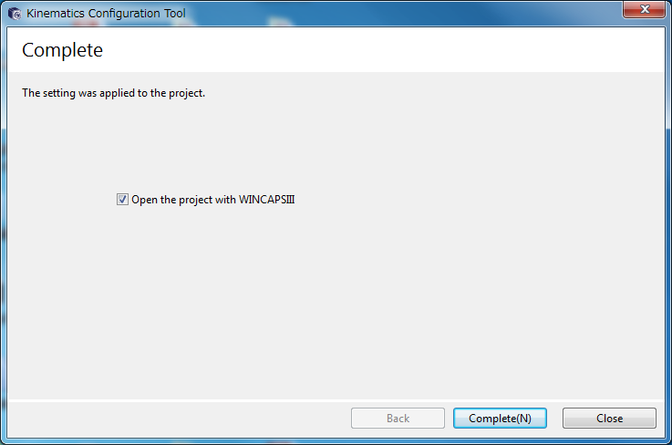 If you check on "Open the project with WINCAPSIII", after pressing [Complete], WINCAPSIII will boot.