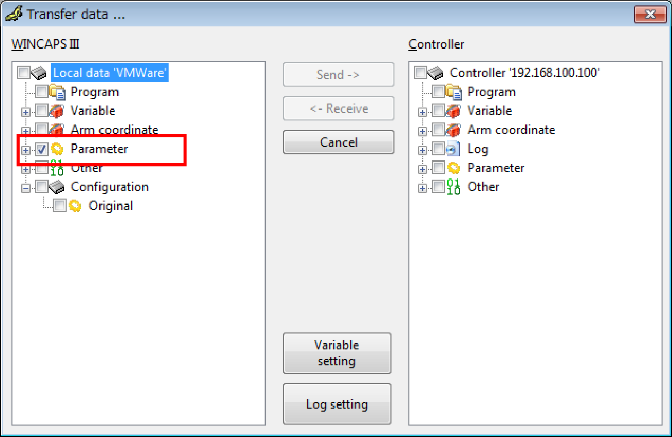 After sending, confirm if the parameter have been sent correctly by using a teach pendant.