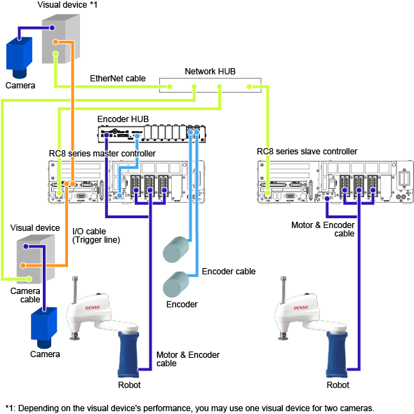 - The specifications for the master controller and slave controllers must be the same. All of them must have the circular tracking licenses, and must be set to Extended-joint-supported, and the same software version.