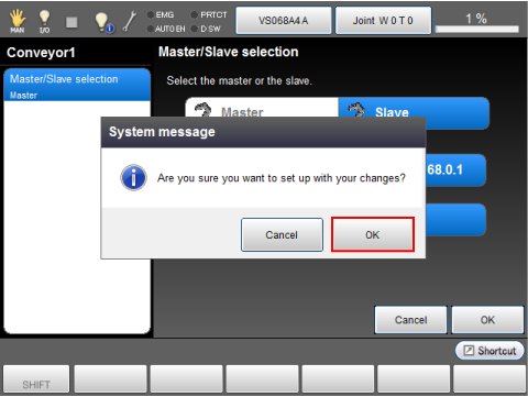 - Check that the joint setting of the slave controller is set to "Disable". If not, change the setting.
