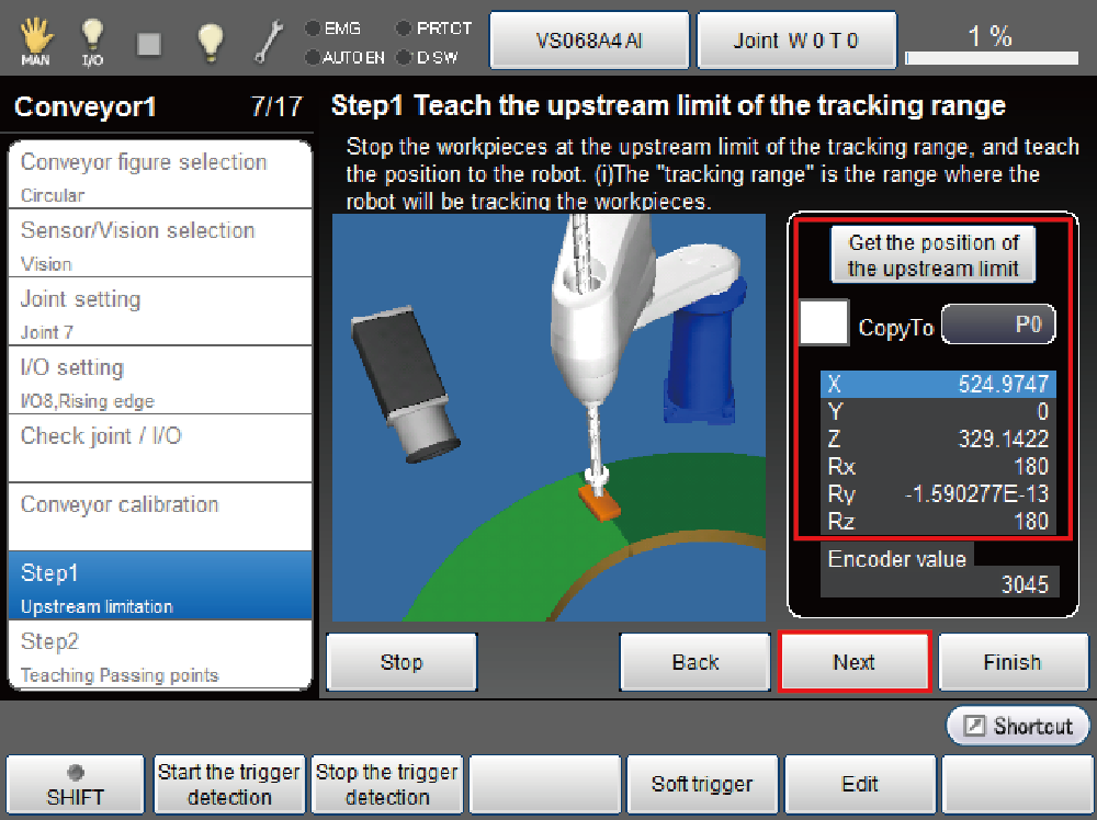 2 Executing Teaching of Upstream Limit of the Tracking Range