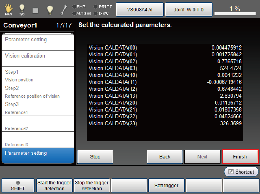 Obtain the encoder value of the shooting position by pressing [Get detected encoder value] button.