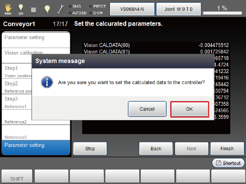 Once all vision coordinate's settings are complete, press [OK].