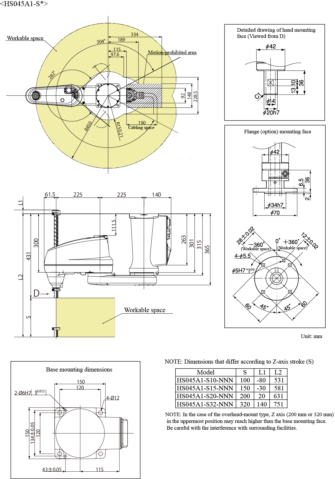 HS045A1-S*NNN; Arm Length 450 mm, Overhead-mount, Standard Type