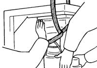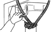As illustrated below, wind the belt sling around the robot base two turns and make a knot on the side opposite to the power connector.