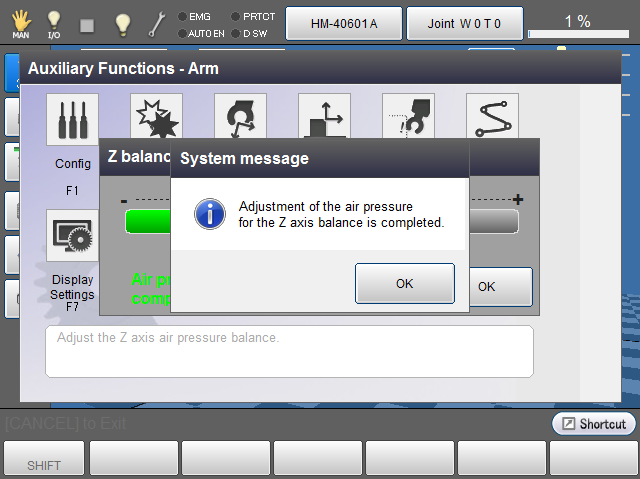 Operation path : [F2 Arm] - [F6 Aux]- [F9 Z Balance]