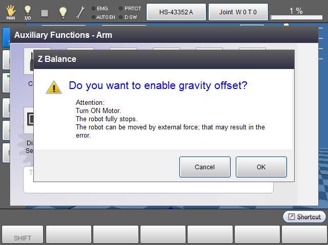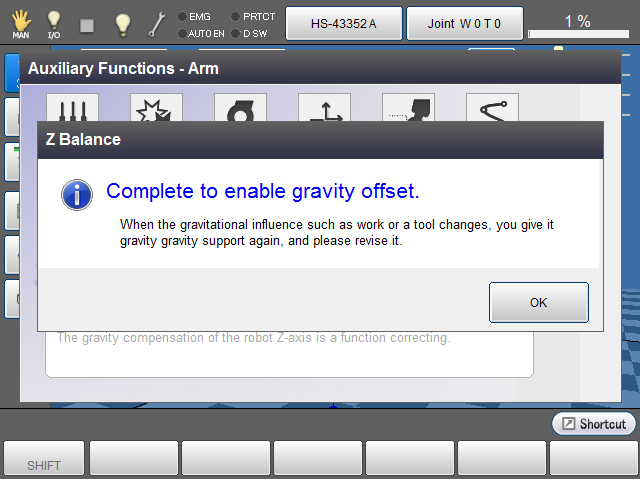 Press [F9 Z Balance] to display "Do you want to enable gravity offset ?"
