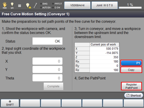 After confirming the message, press [OK]. The path will be registered. The free curve motion setting is complete.