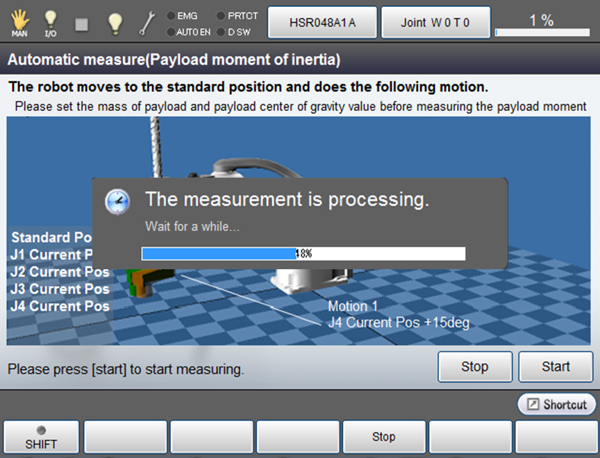 Information of how a robot performs and caution about measuring will be shown in the window of Payload moment of inertia.