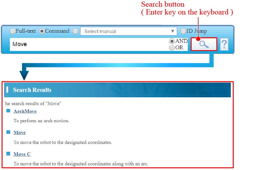 - Command Search only targets to the command names and its function descriptions written in the command description contents, which is stored in Command Reference in PROGRAMMAR’S MANUAL.