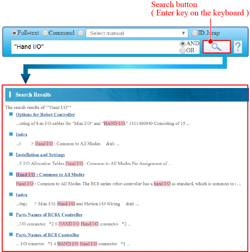 For information of the combination of several search options (AND/OR search and wildcard search), please refer to "Special Cases for Search String Entry".