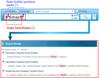 To search a double quotation mark (") itself, enter a backslash (\) in front of the double quotation (") (see the figure below).