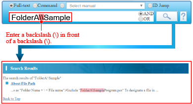 To search a backslash (\) itself, enter a backslash (\) in front of the backslash (\) (see the figure below).