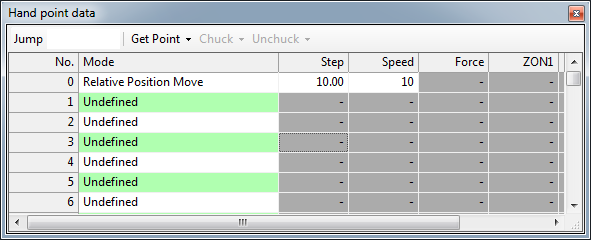 The hand point data window is enabled only when the robot type is COBOTTA.