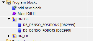 "DN_DB" consists of two DBs: "DB_DENSO_ROBOTS[DB2990]" and "DB_DENSO_POSITIONS[DB2999]"