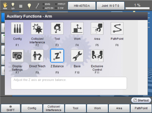 Operation path :[F2 Arm] - [F6 Aux] - [F8 Direct Teach]