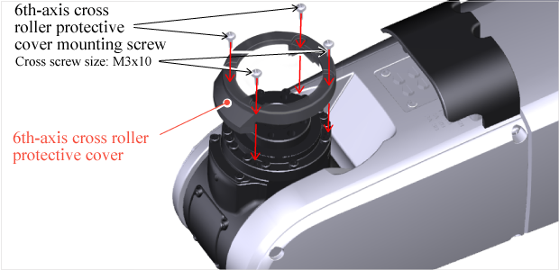 For the standard type robot, fix the 6th-axis cross roller protective cover to the 6th-axis.