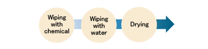 | Wiping | If your environment does not allow the robot jacket to be taken off on a daily basis, perform the following steps to wipe the jacket with a chemical for cleaning. Water may penetrate the seams of the jacket. Be careful when wiping with a chemical or wiping with water. Make sure that there are no missing spots left.