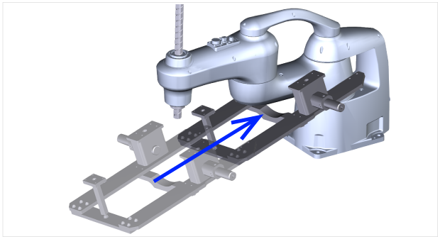 Install the jig assembled in STEP 1 to the robot carefully not to collide with the T-axis of the robot.