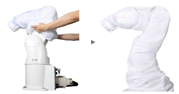 Just installing the robot protective jacket for food processing on the robot prevents liquid from attaching to the robot unit.