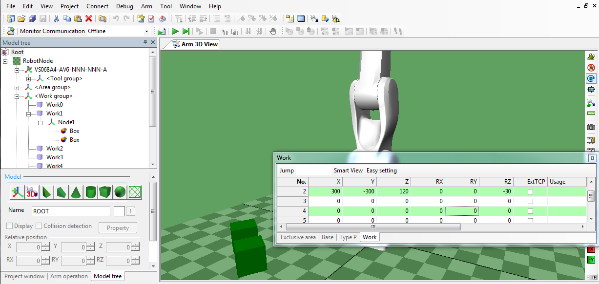 Simple modeling is a built-in tool that allocates pallet bench, pallet, work piece, and other objects in Arm 3D view.