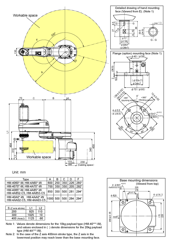 HM-W,HMC5 Series Robot Unit (Floor-mount, Dust- & splash-proof type, Clean room type)