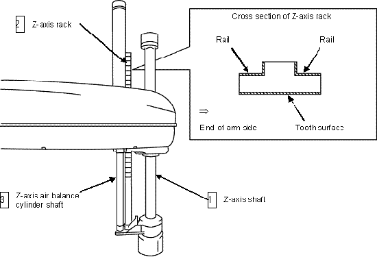 | 2 | Z-axis rack | EPNOC AP1 | 2 to 3 cc | Apply the grease to the rack and gear of the Z-axis shaft. |