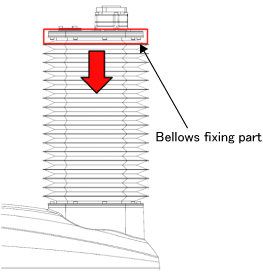 For the clean room type, be sure to remove the upper bellows fixing part, and then press down the bellows as shown in the figure below.