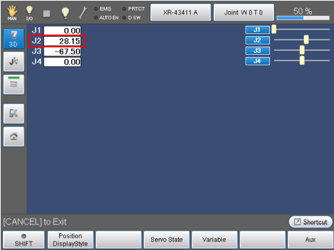 Move the 2nd axis (R-axis) to the range from 12° to 78° using the teach pendant.