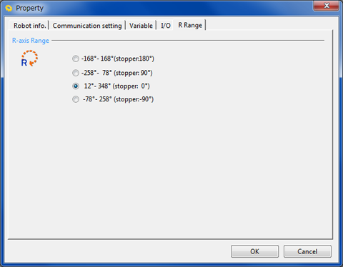 The R-axis motion range data held in the robot controller can be changed using WINCAPSIII.