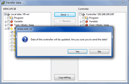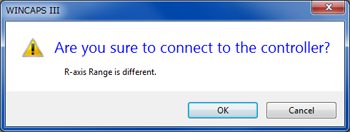 The following confirmation message appears since the R-axis motion range data held in the robot controller is different from the one specified in WINCAPSIII.