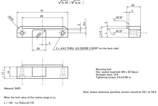 Drawings of the 3rd axis (Z-axis) Mechanical Stopper for Negative Direction (XR Series, Z-axis stroke: 135 mm)