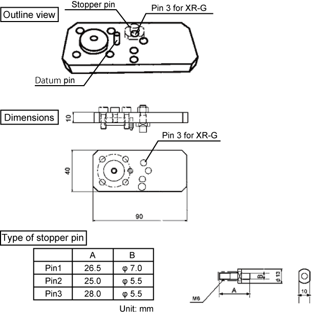 The CALSET position of the 4th axis (T-axis) refers to the point where the stopper pin (shown below) comes into contact with bolt A by turning the 4th-axis (T-axis) flange.