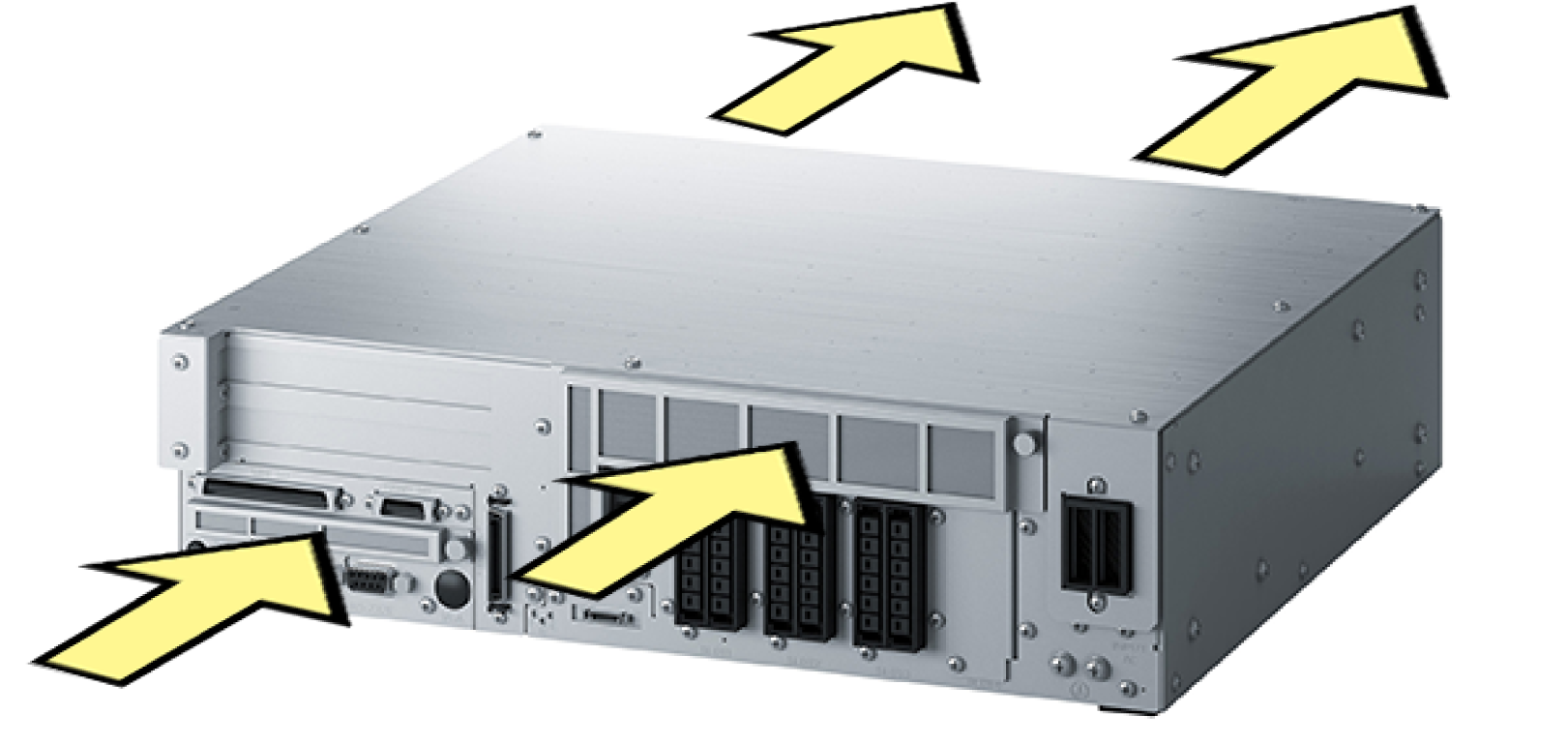| Cooling fan in the robot controller | Hold up a hand to the exhaust port and check the wind is blowing off. | Should work properly. | Repair or replace. |