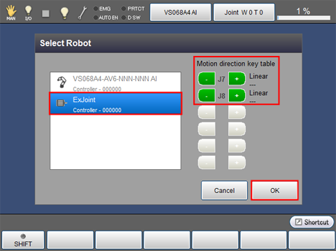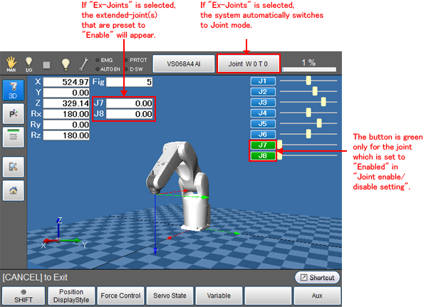 - Without displaying this window, you can operate the extended-joints manually.