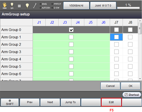 Move the cursor to a joint to be grouped and then press [F5 Edit].