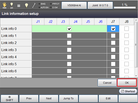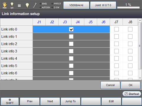 "Link info" defines whether or not robot joints and extended-joints affect with each other when they are being driven.