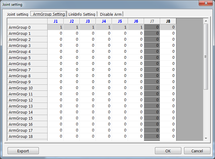 This tab allows to set an arm group that is necessary to operate robot joints and extended-joints in a program.