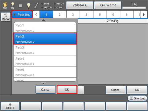 [Path Points Setting] window appears. Press [Path No.] then select the path number to be set and then press [OK].