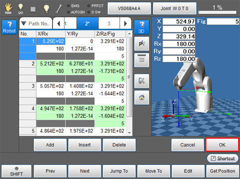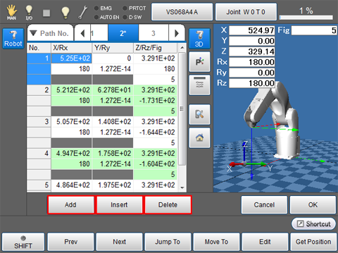 - [Insert] : Insert a path point data in front of the the selected path point.