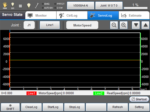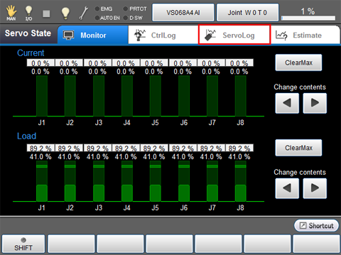 Top Screen—[F2 Arm]—[F3 Servo State]—[ServoLog tab]