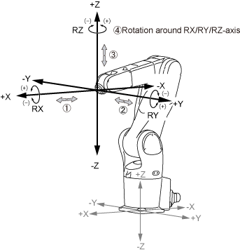 The arm corresponding with the operation of the J1 to J4 (4-axis robot) or J1 to J6 (6-axis robot) arm traverse keys will move.