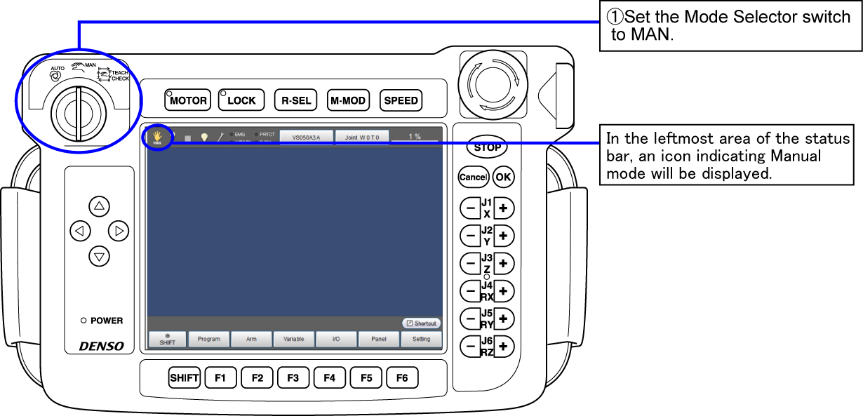 It allows robot operation from teach pendant and mini-pendant, or automatic robot run by turning on the robot controller.