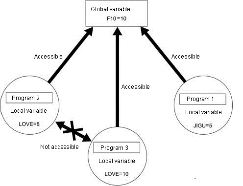 A local variable can only be accessed in a program where it is defined. Since local variables are restricted in access, they can be defined with a same name in different programs. Those variables do not affect each other. Values dissapear once a task completes.